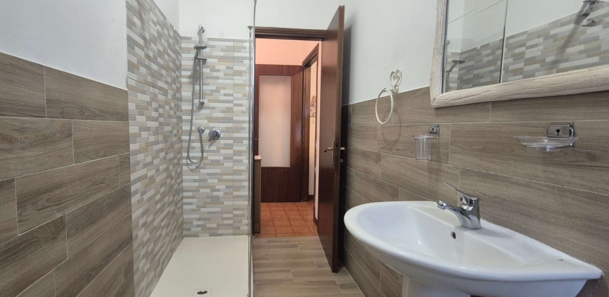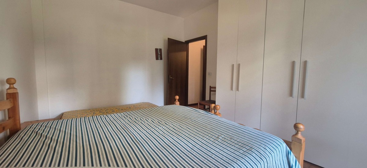 Internamente si compone di ingresso in ampia sala con angolo cottura, attraverso la porta finestra si accede ad un terrazzo privato ideale per il relax del dopo spiaggia e per le cene all'area aperta. Proseguendo internamente, dalla sala e attraverso un piccolo disimpegno si accede ad una delle due camere da letto matrimoniali attrezzata con letto matrimoniale e e letto singolo aggiuntivo, sempre dalla sala si accede all'altra camera matrimoniale anch'essa con accesso a terrazza, si completa con bagno dotato di box doccia.