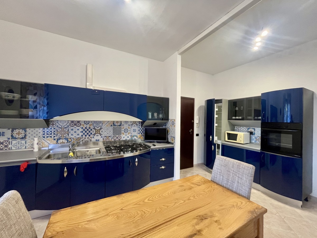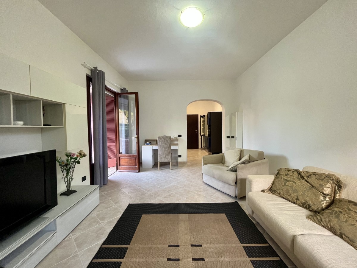 L'immobile internamente si compone di: ingresso in ampia sala con zona divani, cucina abitabile completa di elettrodomestici, bagno con box doccia, due camere matrimoniali di cui una con accesso a balcone. Completa la soluzione posto auto all'interno della proprietà e giardino privato