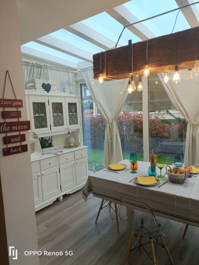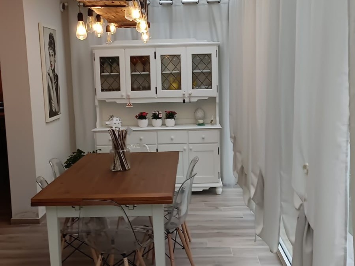 L’ingresso conduce a una luminosa veranda chiusa, attualmente adibita a zona pranzo, che introduce a un’ampia e raffinata zona living con cucina a vista, pensata per momenti di convivialità e relax. La zona notte comprende una camera singola, un servizio igienico e una spaziosa camera matrimoniale dotata di bagno privato e cabina armadi, garantendo comfort e privacy.