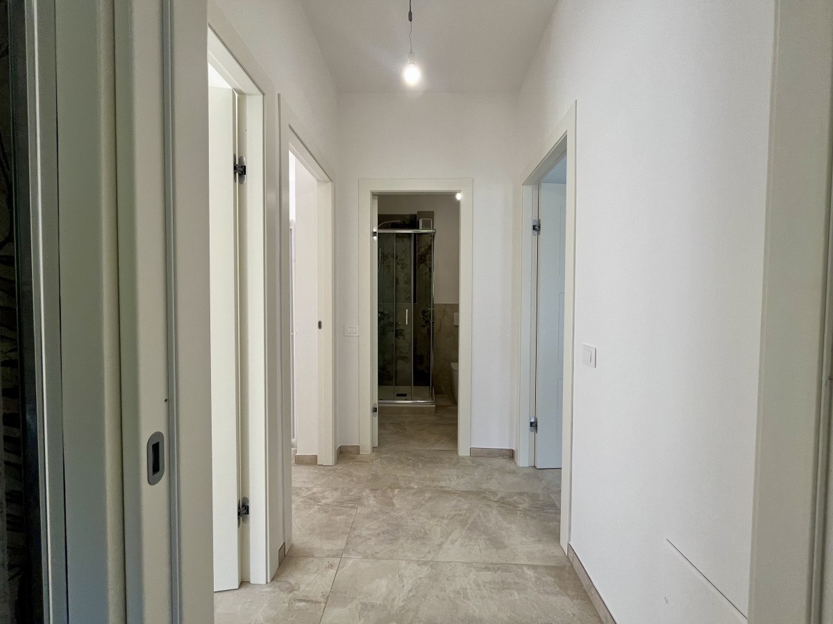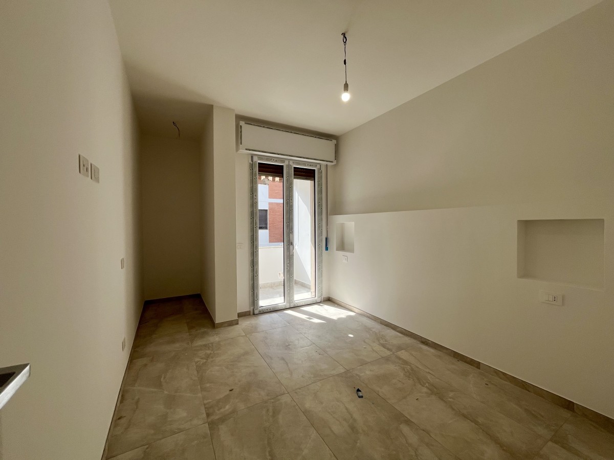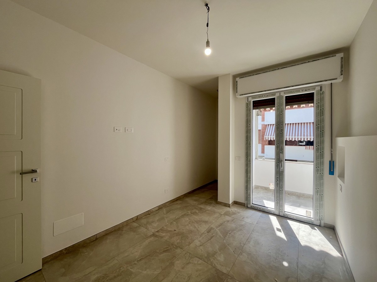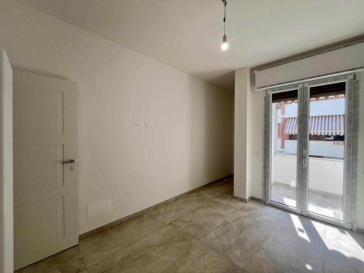 Internamente si compone di: ingresso sul soggiorno con cucina a vista dal quale si accede al balcone perimetrale, una comoda lavanderia, 2 bagni uno dei quali finestrato e l'altro con aspirazione forzata, camera da letto matrimoniale e cameretta dalla quale si accede ad un ulteriore balcone;