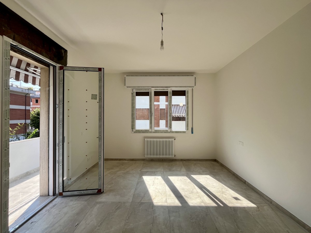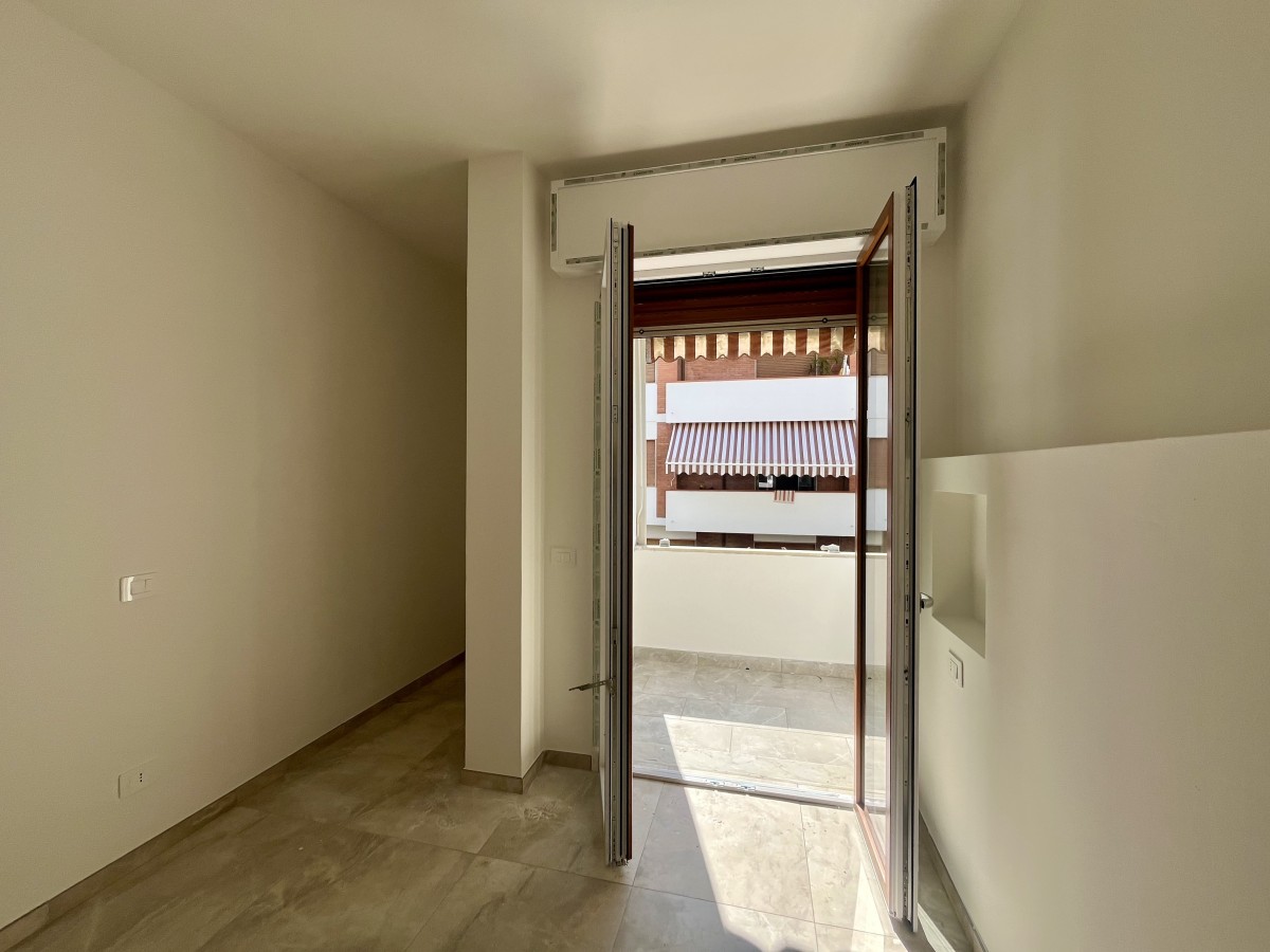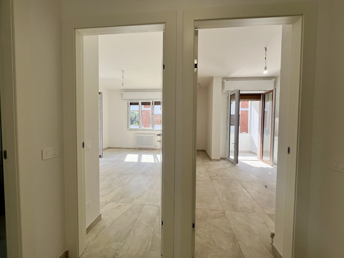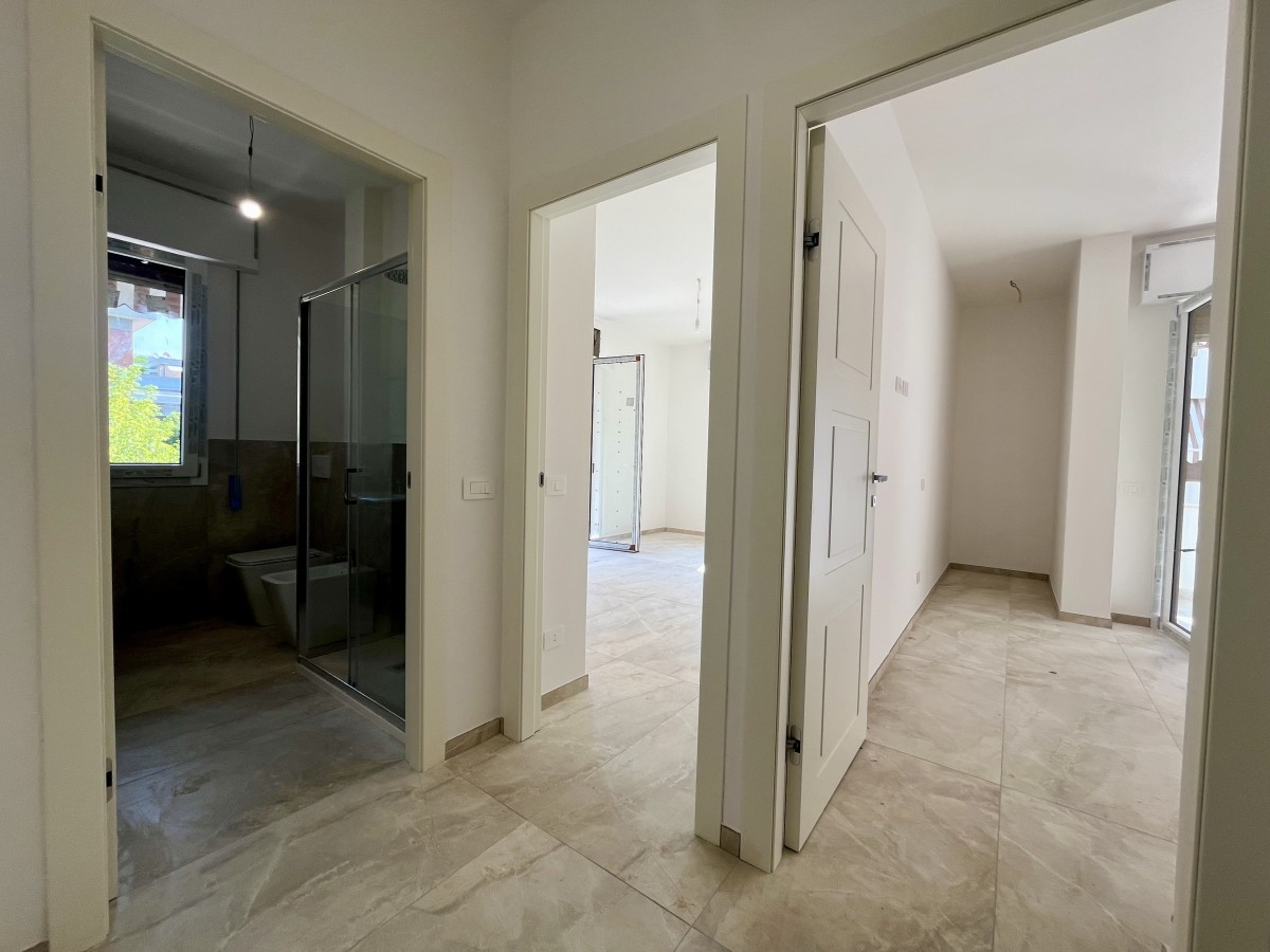 Internamente si compone di: ingresso sul soggiorno con cucina a vista dal quale si accede al balcone perimetrale, una comoda lavanderia, 2 bagni uno dei quali finestrato e l'altro con aspirazione forzata, camera da letto matrimoniale e cameretta dalla quale si accede ad un ulteriore balcone;