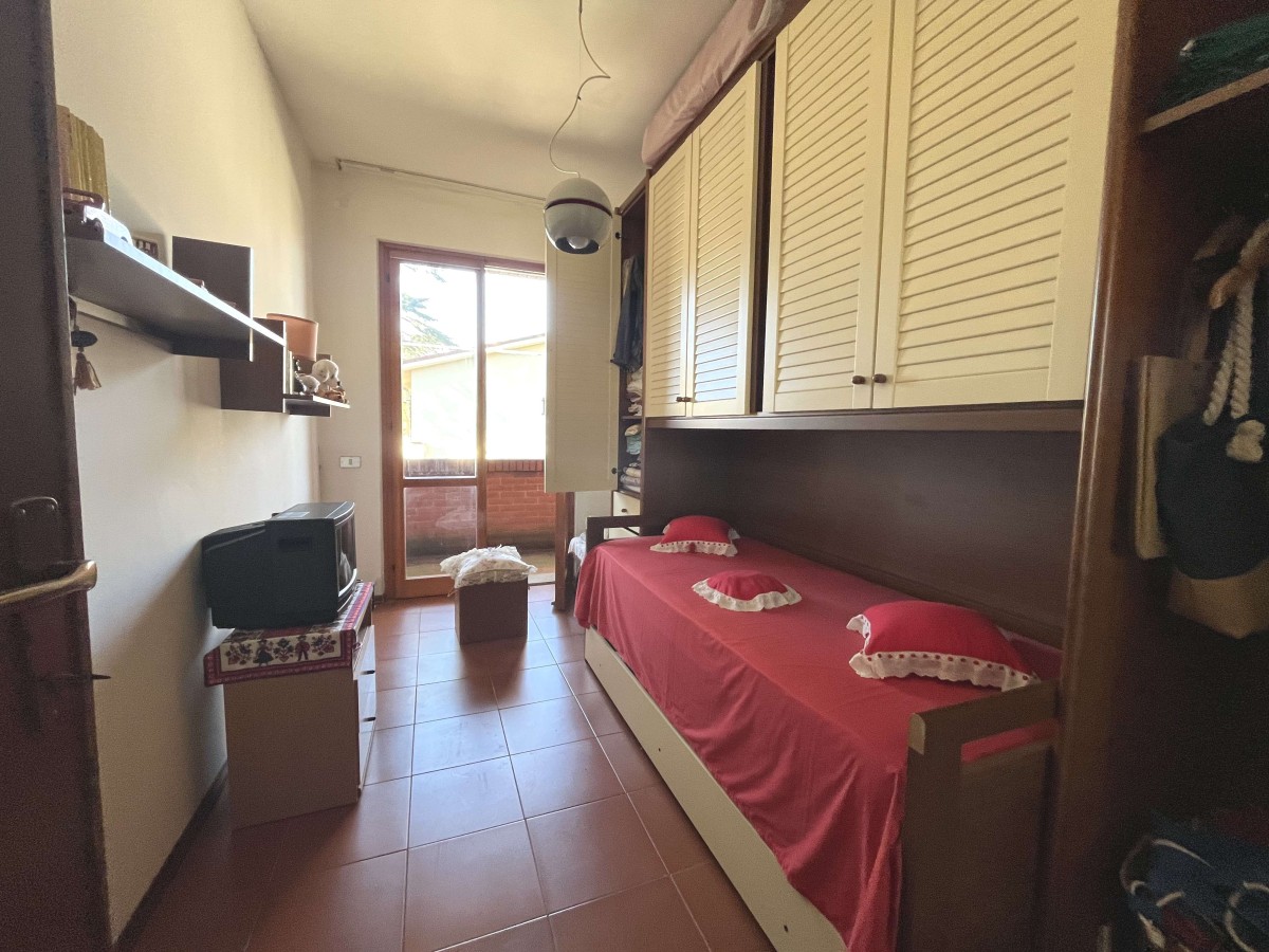L'immobile internamente si compone di: ingresso in sala, disimpegno, bagno di servizio, cucina abitabile, la zona notte si compone di un disimpegno, camera da letto matrimoniale, camera da letto singola e bagno con Box-doccia.