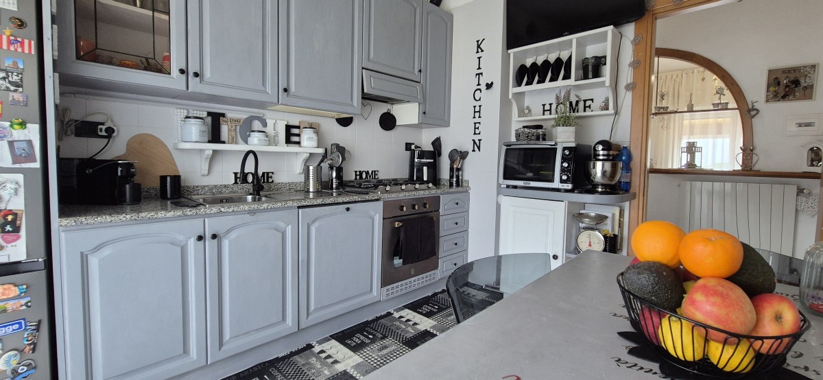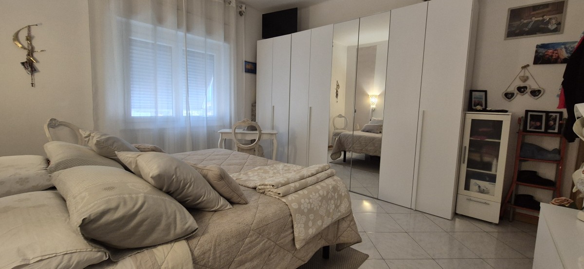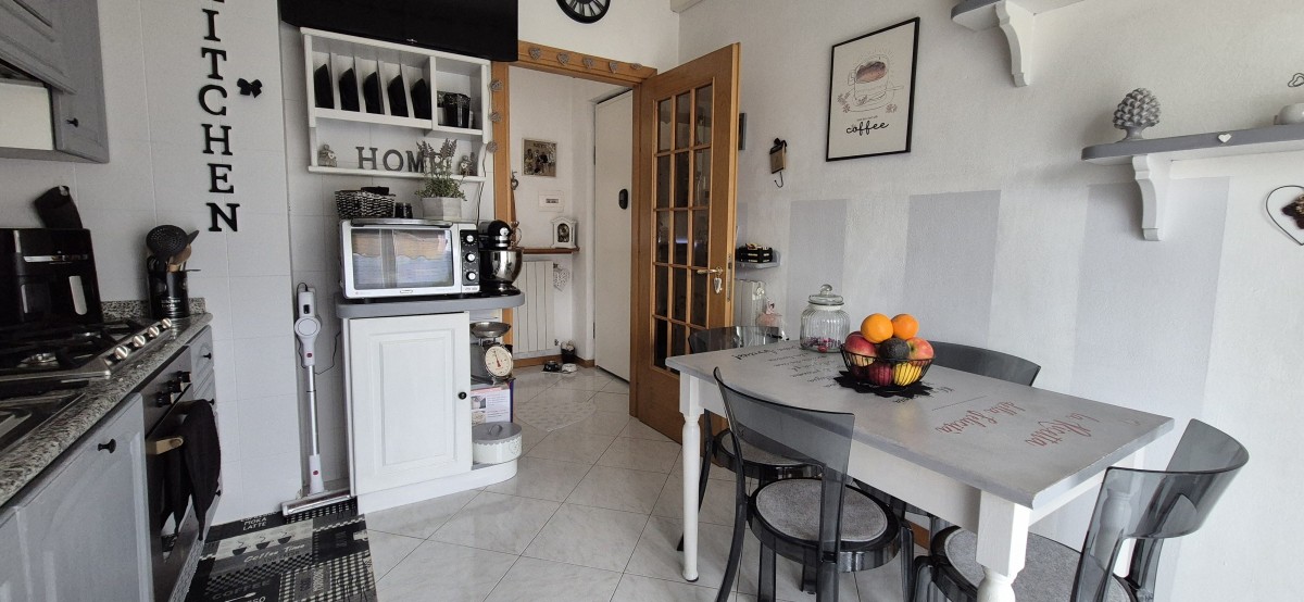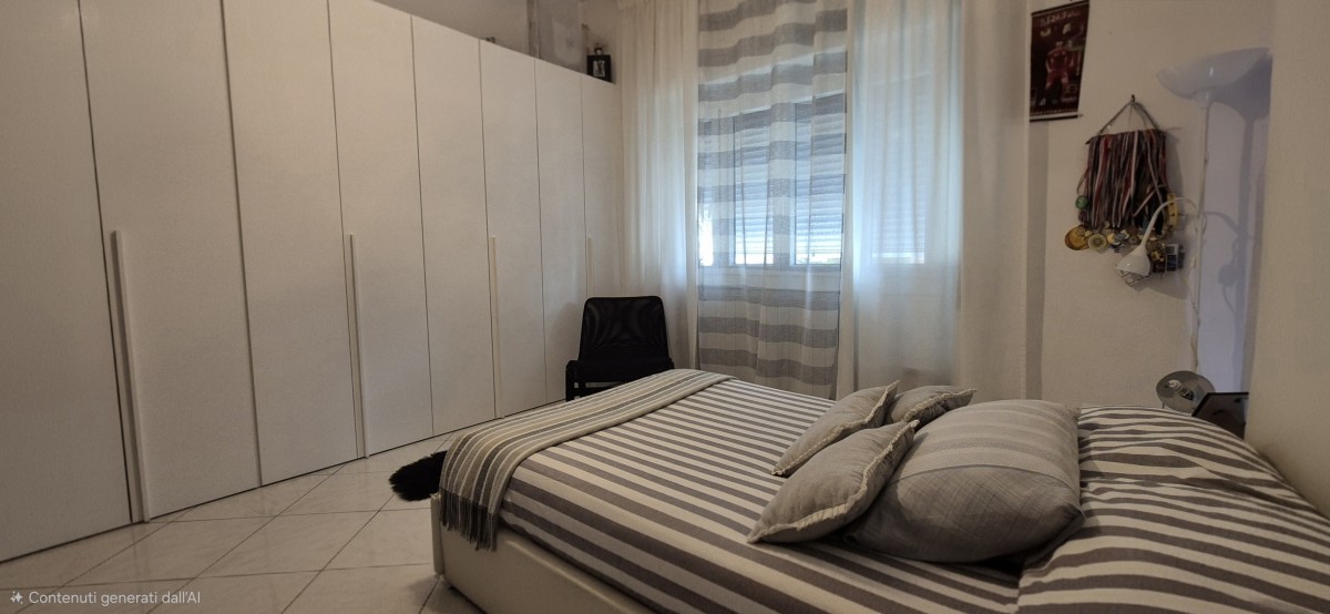 L'immobile oggetto di compravendita è situato al quarto piano senza ascensore, tramite il portone blindato si accede sul disimpegno posto al centro dell'appartamento alla sua sinistra troviamo una cucina abitabile con accesso al un balcone, invece alla destra tramite un funzionale arco si accede al soggiorno anche esso servito da un balcone spazioso dove c'è la possibilità di poter mettere l'arredamento da esterno. Tornando del disimpegno centrale frontalmente si apre la zona notte composta da 2 ampie camere matrimoniali e bagno finestrato con vasca. gli infissi in PVC con doppio vetro, la climatizzazione con condizionatori e classici termosifoni, la doppia esposizione oltre ai lavori eseguiti sullo stabile, permettono all'immobile di avere un ottima efficienza energetica e il massimo mantenimento della temperatura interna dell'immobile.